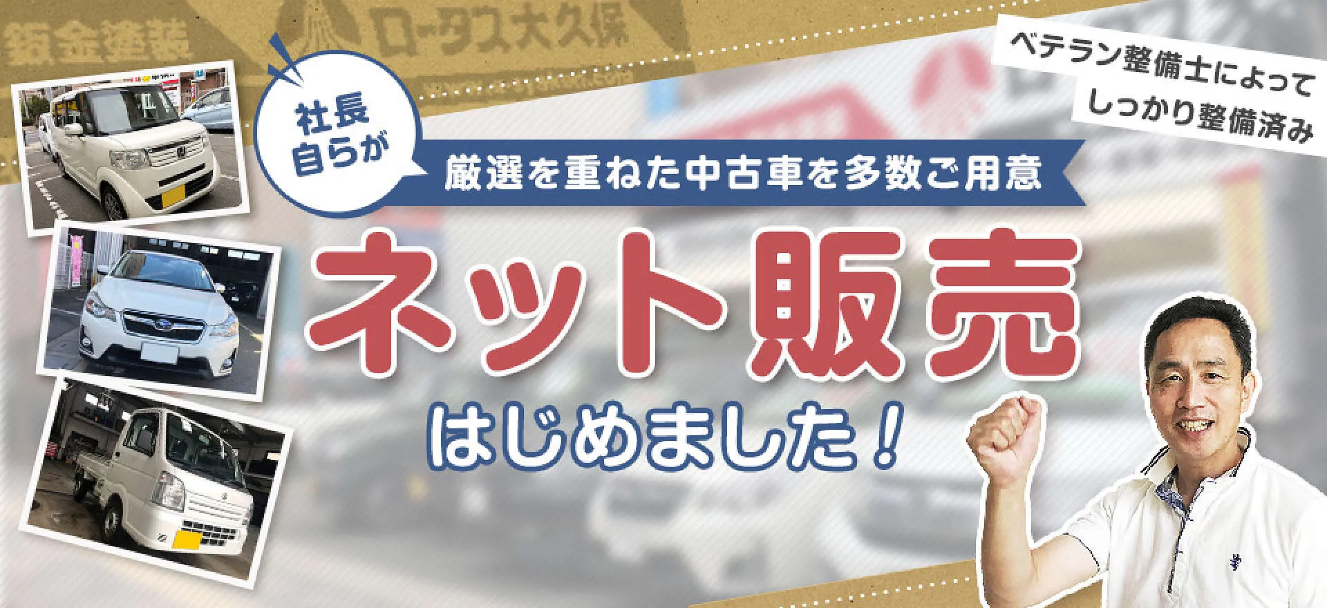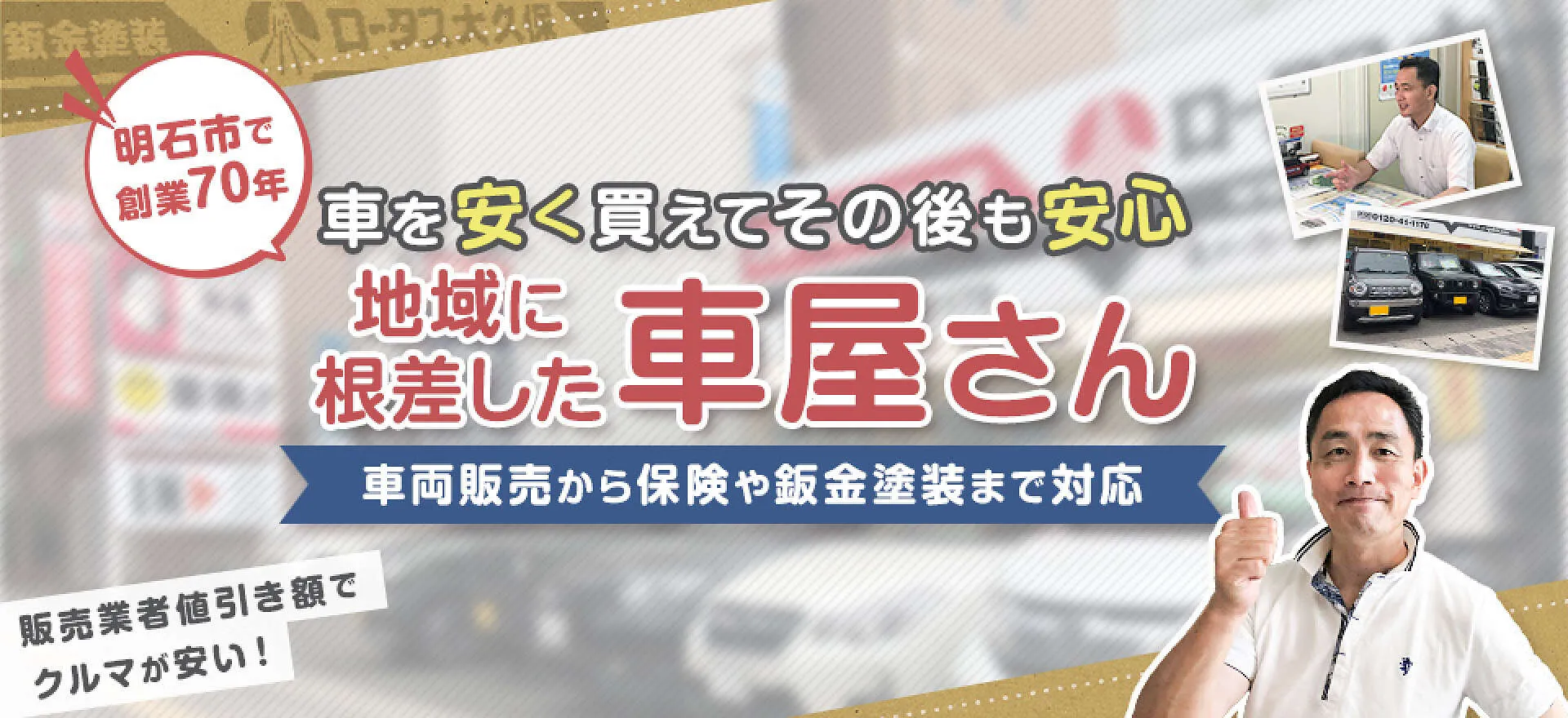 明石市のロータス大久保は、車両販売を中心に、自動車保険、鈑金塗装までトータルで対応できる車屋さんです。