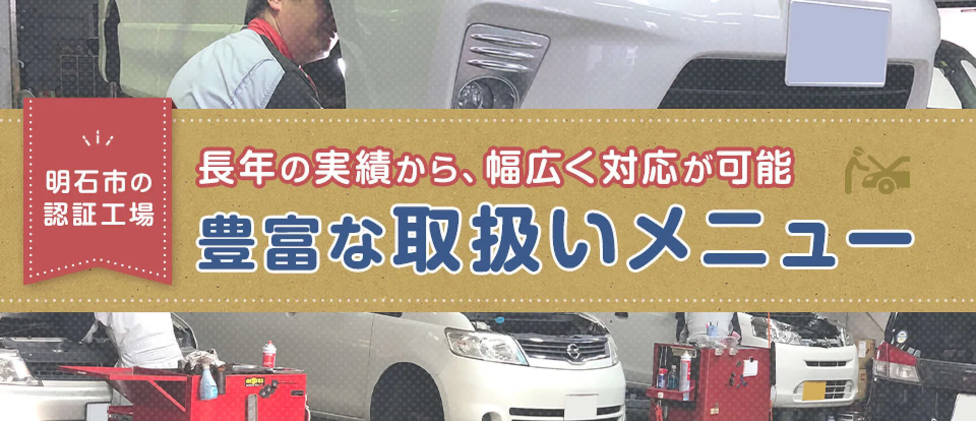 兵庫県明石市を中心に、地域に根差した町の整備工場として心のこもった車修理をお約束。