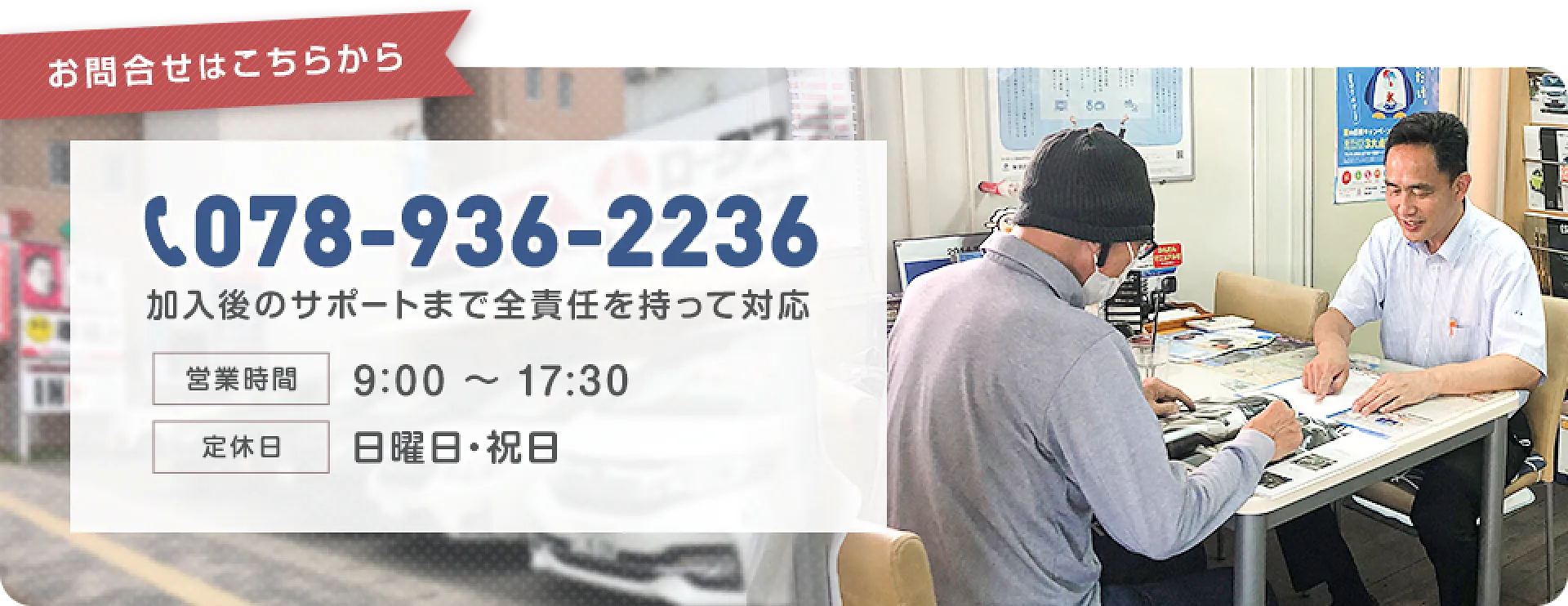 自動車保険にご加入後、万が一事故に見舞われたら、まずはロータス大久保の玉田(078-936-2236)までご連絡ください。