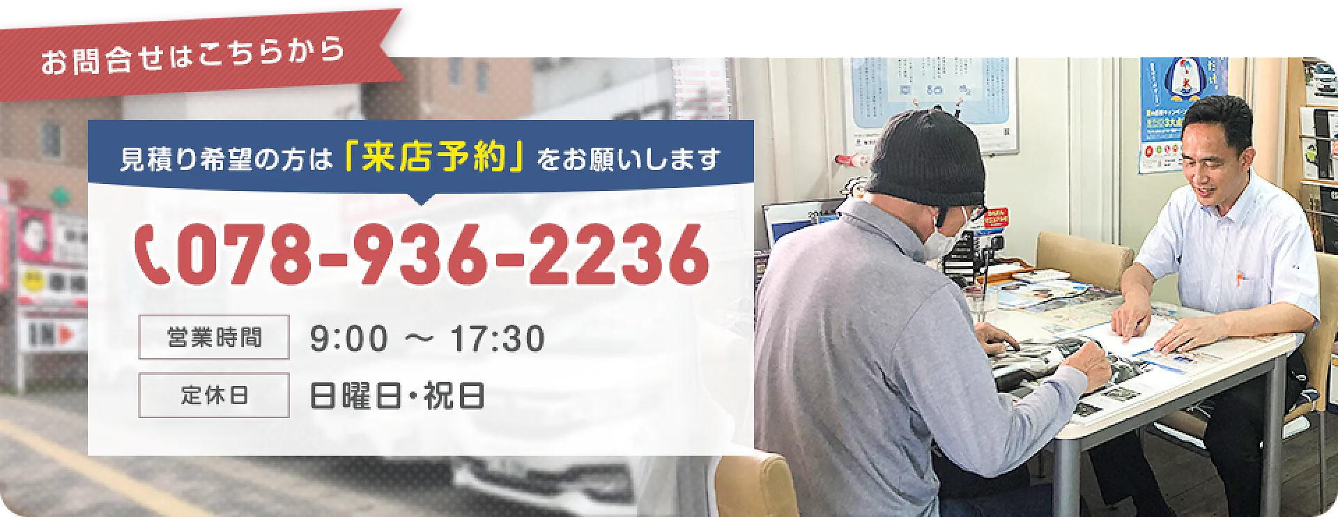 明石市のロータス大久保では、経験・知識豊富な社長自らが現場対応から保険会社の交渉までいたします。